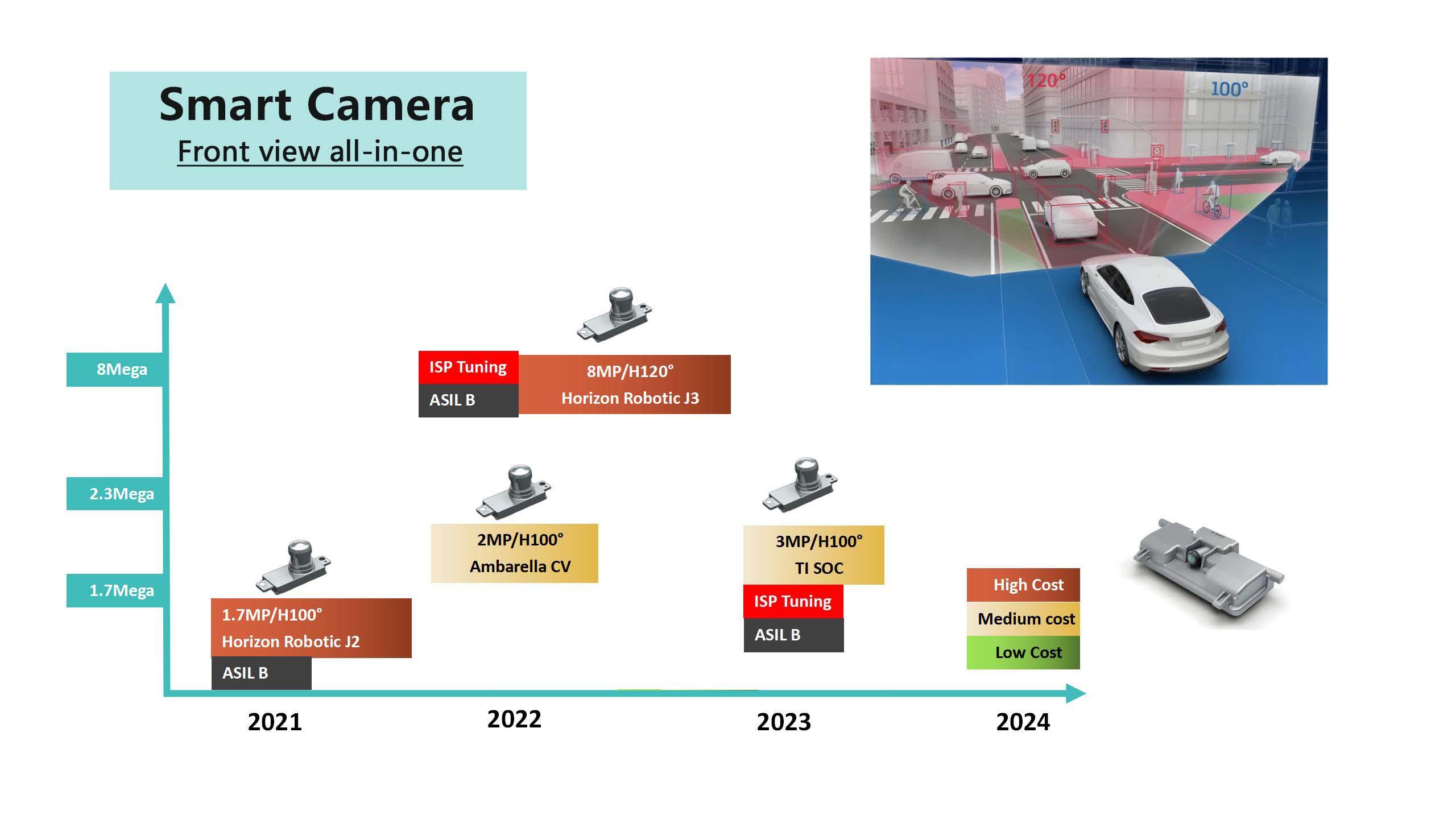 ADAS (Advanced Driver Assistance System), also known as Autonomous Driving Assistance System. As an important carrier of intelligent driving, the popularization of ADAS is a prerequisite for achieving autonomous driving in the future. Currently, ADAS is in a high-speed development period of L2 level.The camera is the core sensor of the ADAS perception layer, and perception type ADAS cameras are used for active safety and need to accurately capture images. SENSING front view all-in-one smart camera module is independently developed and designed by SENSING. It adopts high dynamic vehicle image sensors and has high reliability performance, which can provide high-quality images for visual applications of advanced autonomous driving assistance systems. The camera module has wide applicability and can adapt to different SOC platforms.